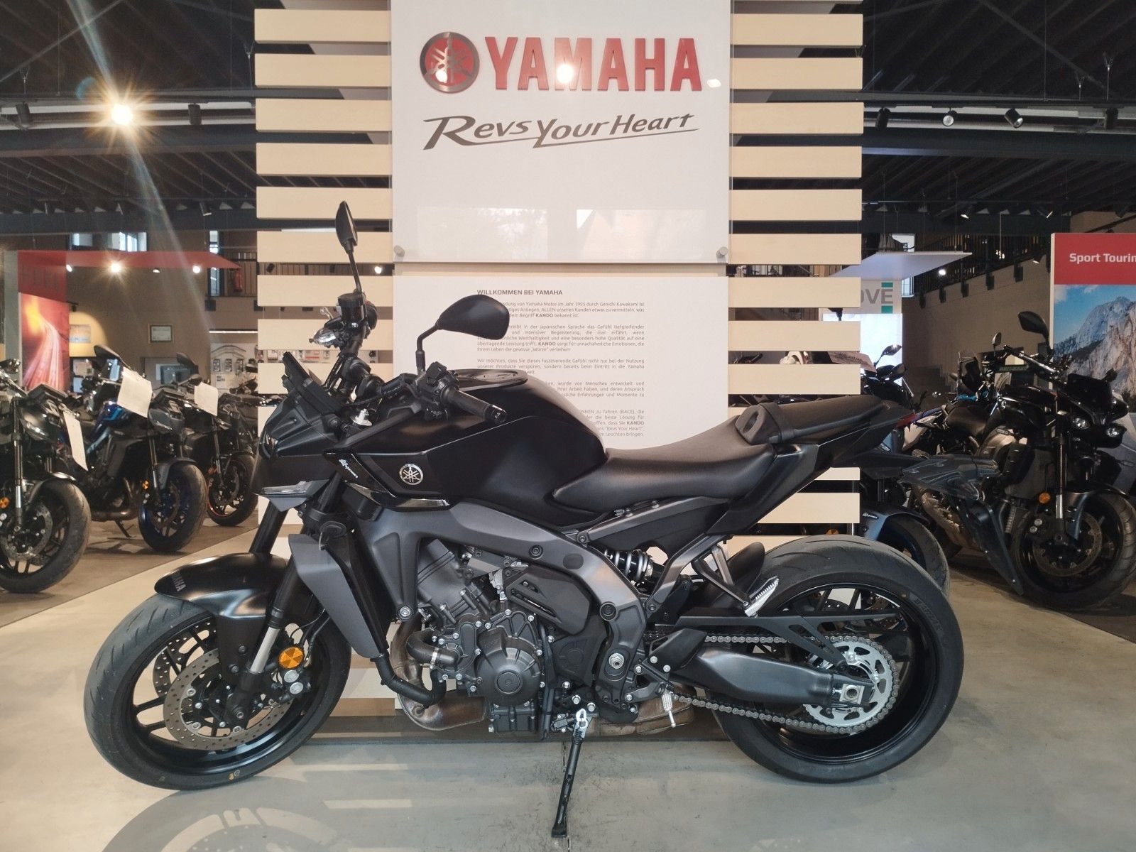 Der aggressive Look der MT-09 ist von der Dark Side of Japan DNA durchdrungen und soll das Gefühl der ikonischen, drehmomentstarken Beschleunigung des CP3 Motors verstärken. Nach dem Motto "weniger ist mehr" soll jedes einzelne Detail den aggressiven Style der MT-09 unterstreichen.Das kompakte und agile Fahrwerk sorgt für ein messerscharfes Handling und die neu definierte Sitzposition bietet das beste und engagierteste Fahrerlebnis der Hyper Naked Reihe. Technologien der nächsten Generation verbessern das Fahrerlebnis noch weiter, wie zum Beispiel bei der Version mit Y-AMT, aber auch schräglagenabhängige Assistenzsysteme, anpassbare Fahrmodi und ein brandneues, farbiges TFT-Display mit Smartphone-Konnektivität und Navigation zählen dazu.