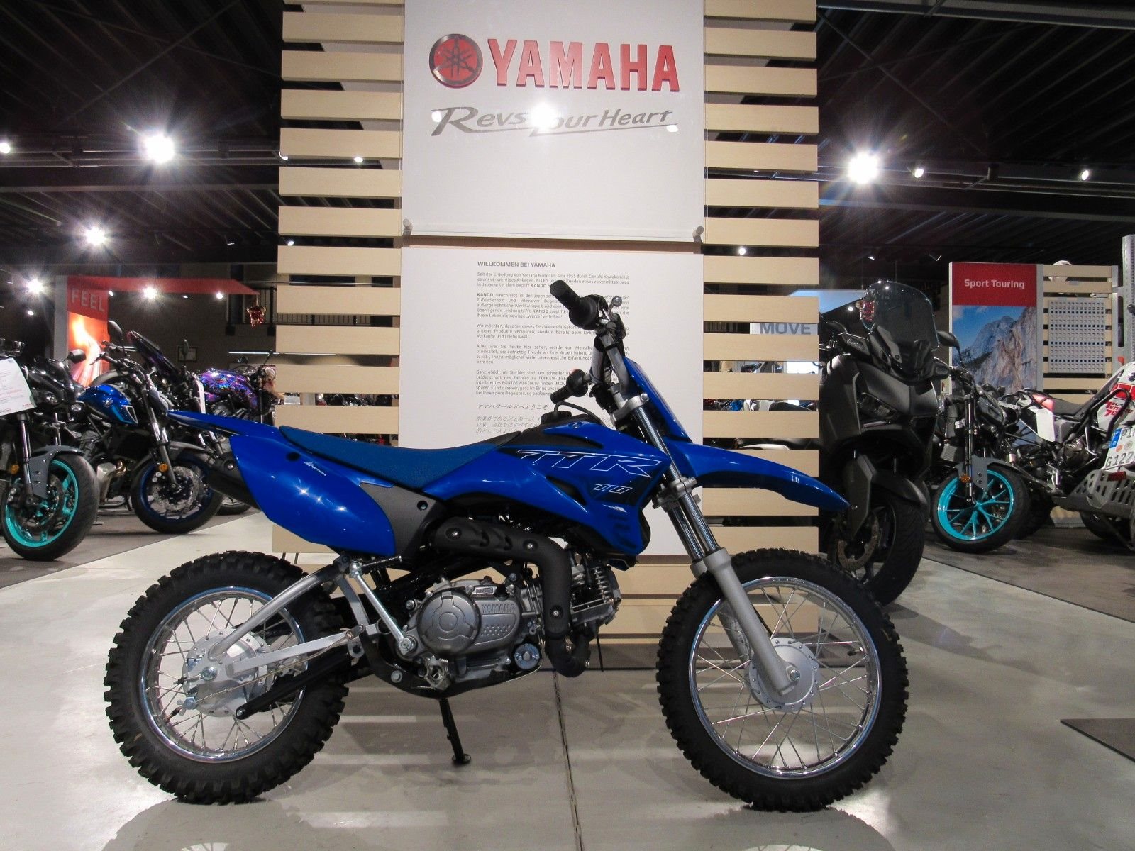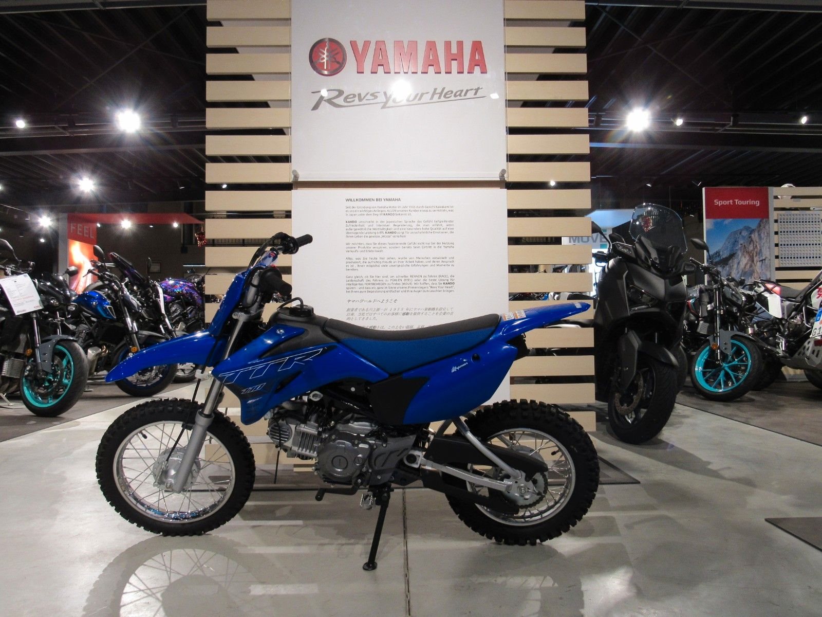 Dieses Motorrad sieht einfach cool aus, ist einfach in der Handhabung, ausgesprochen komfortabel und hat einen niedrige Sitzhöhe. Die Telegabel und die Monocross-Hinterradfederung haben lange Federwege. Für guten Grip sorgen die Stollenreifen auf den vorne 14 Zoll und hinten 12 Zoll großen Rädern. Die robuste Anbauteile in Icon Blue sind von den siegreichen Yamaha Rennmotorrädern inspiriert.Neulinge wie auch erfahrenere Offroad-Piloten werden sich über die gleichmäßige und kräftige Leistungsentfaltung des laufruhigen 110 cm Viertaktmotors mit E-Starter freuen. Dank der Fliehkraftkupplung ist das Vierganggetriebe äußerst einfach in der Handhabung. Zum Starten wird ein Zündschlüssel benötigt, was für zusätzliche Kontrolle sorgt. Auch für die TT-R110 gilt: viel Fahrspaß bei wenig Wartungsaufwand.